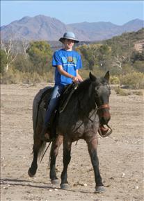 Below: On her spunky little horse Bonita, at a dude ranch in Arizona over Thanksgiving. They bonded.
