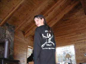 She loves skiing with her family, and this year went down her first double-black diamond run ("The Wall" at Kirkwood). She has the shirt to prove it.