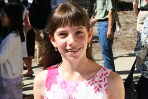 At left: With the Chinese pen pals she met this summer.