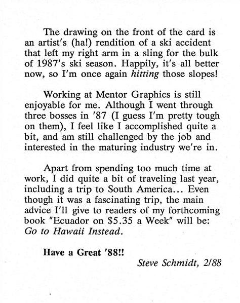 Steve's Holiday Card sent out January 1988