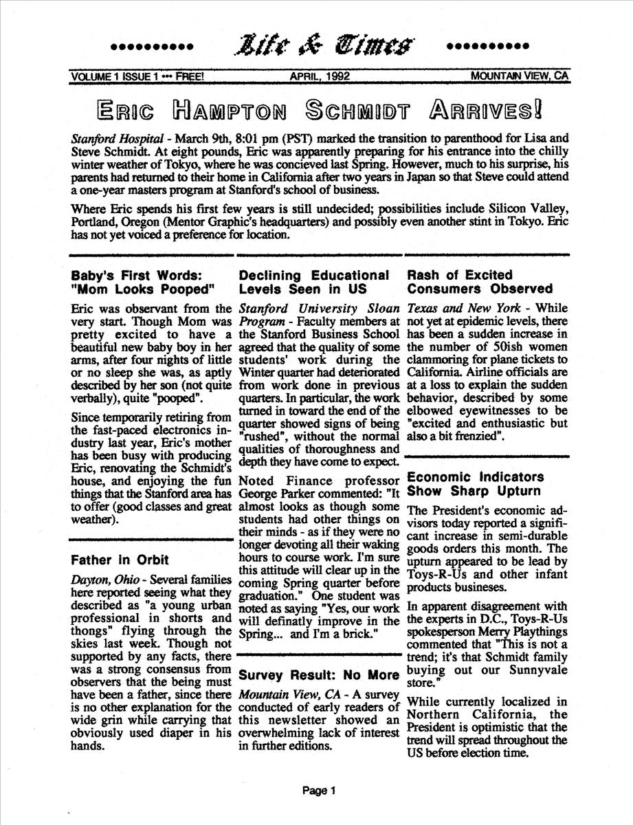 Eric's Birth Announcement sent out May 1992