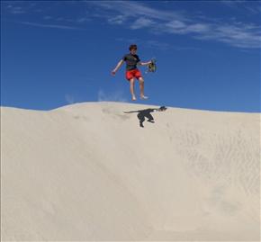 Eric sailing off a sand dune in Baja