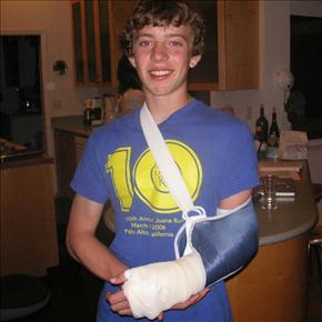 He broke his arm while learning the hurdles last Spring in Track.