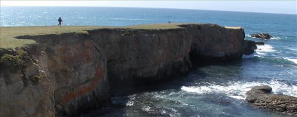 Below: Eric heading out a long spit on the Northern California coast.
