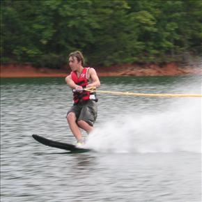 Eric got some waterskiing practice while visiting his grandparents in