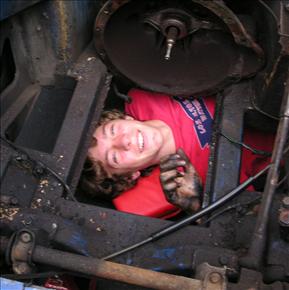 His big project is his car. Last Spring he bought an old MG Midget