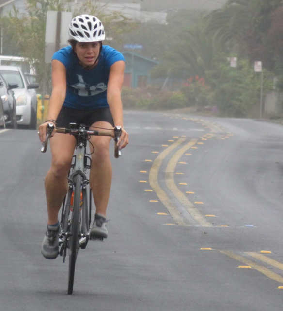 portion of her triathlon (on the bike her big brother bought for her) |