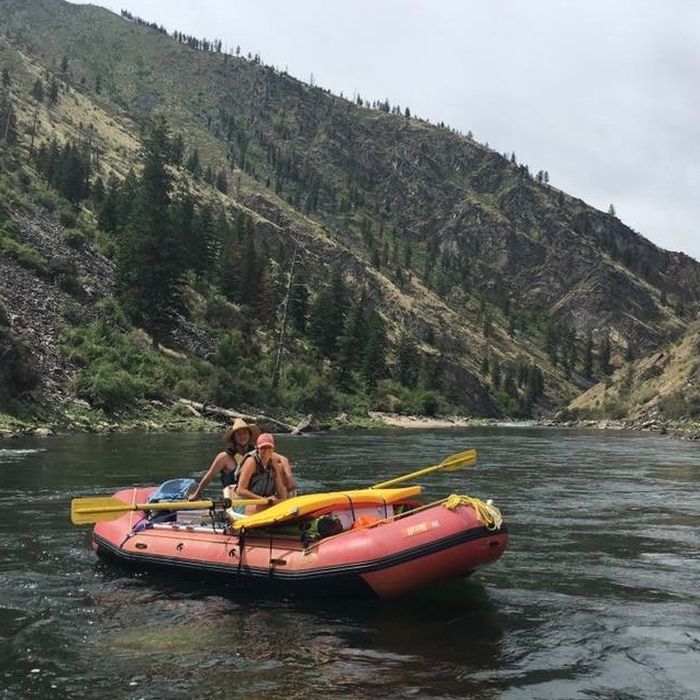 bunch of their rafting friends spent 10 days rafting down the Salmon river in Idaho. She ran the river either at the oars of this boat or in a smaller single. They rode through lots of difficult rapids, one of which Justine decided to take UNDERNEATH this raft. Clearly a parenting failure. |