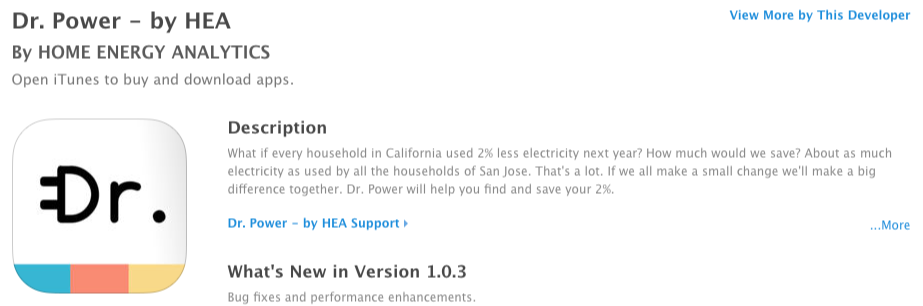 Regarding Home Energy Analytics -- During 2016 Steve led a brilliant team of designers and developers to build a cool new iPhone app to help Californians save energy in their homes. This work is being funded by a grant from the California Energy Commission, and the first version was released right at the end of the year. A huge accomplishment, but only a first step: we've already found a whole host of things to do to make it better. Happily, it's a 3 year project, so we've got time to make it even better. ![]() |