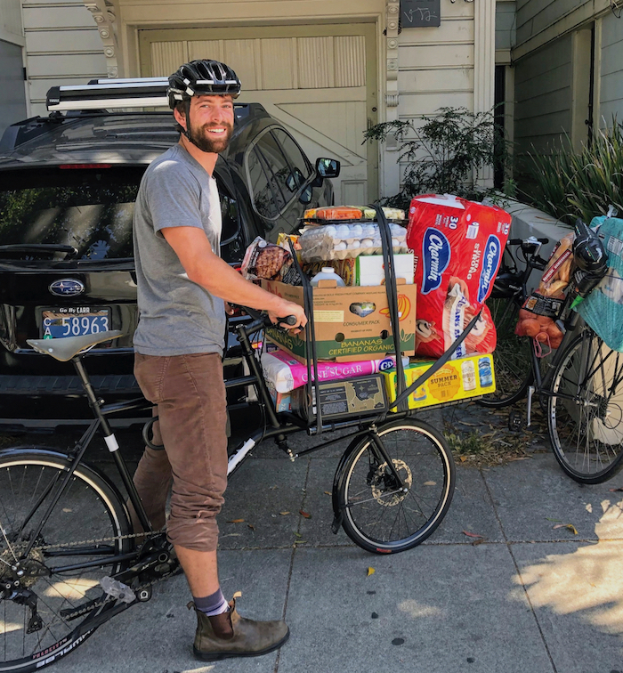 Back at "the Swamp" in SF, using his cargo bike for a Costco food run |